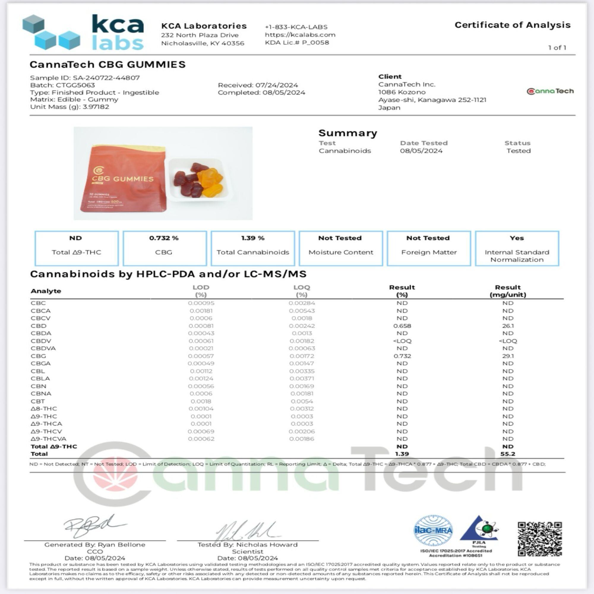 CannaTechは、世界に誇れるJapan QualityのCBDをモットーに、原料の輸入から製造販売までを一貫した品質管理、最も厳格な食品安全の国際規格のひとつである「FSSC22000」認証取得を経て、200を超える要求事項クリアし、厳重な管理体制のもと、国内自社CBD工場にて商品を製造。原料輸入時、製品化後に第三者機関においてカンナビノイド成分分析を行い、THCゼロを確認して、安定した品質を担保。革新と誠実さをもって、健康とウェルネスを次のステージへと導く国産のCBDブランドです。