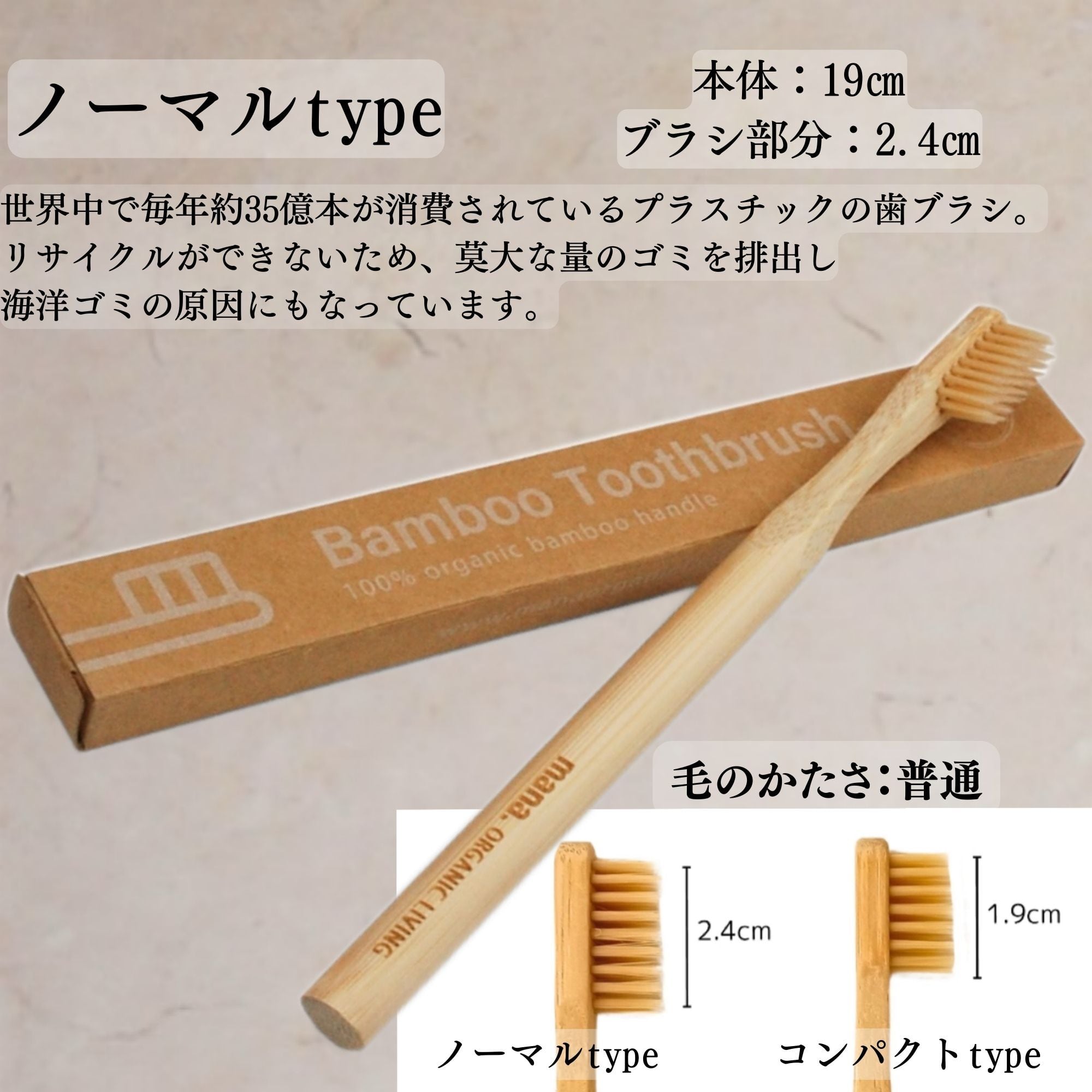 竹 歯ブラシ ノーマル コンパクト マナオーガニックリビング | 竹の歯ブラシ