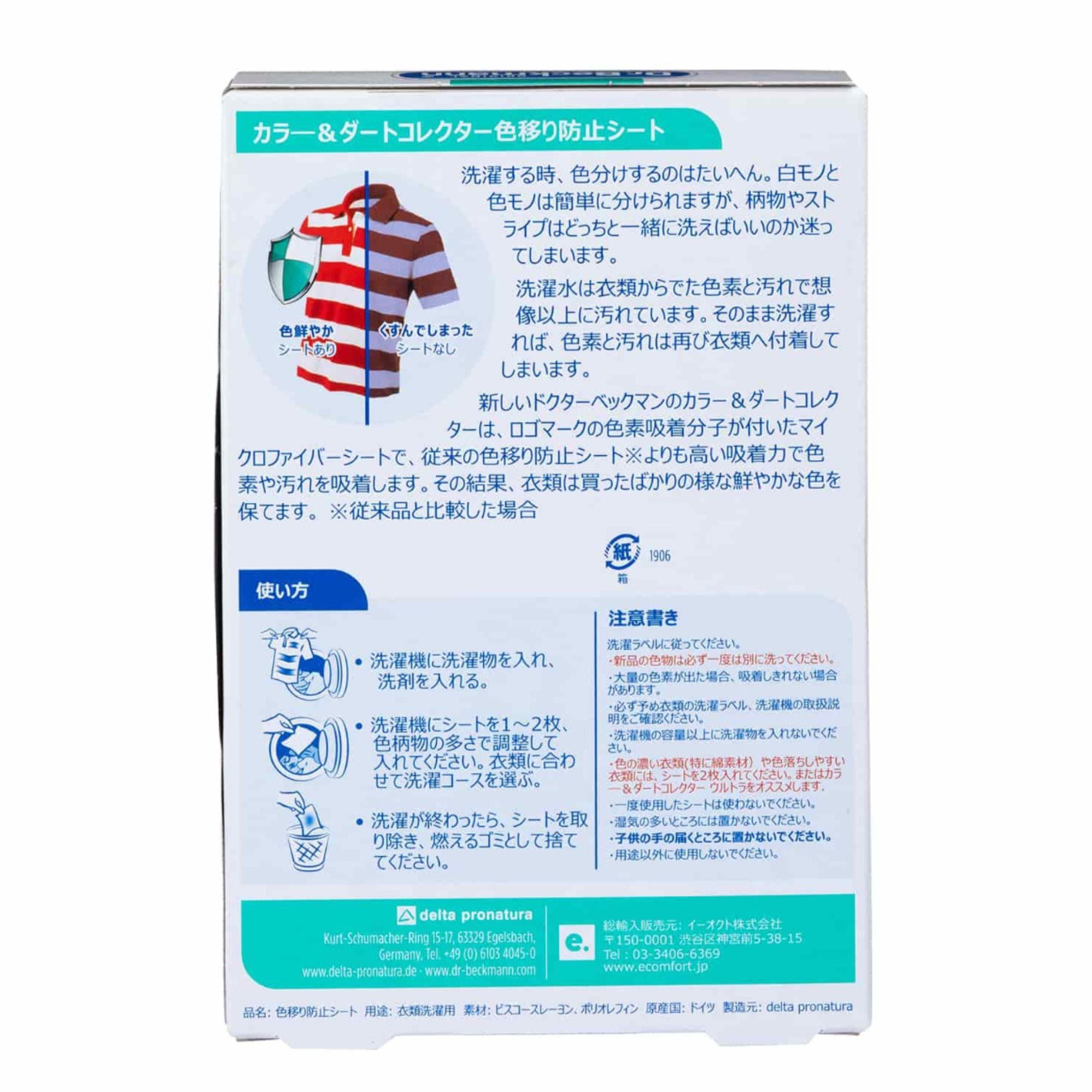 ドクターベックマン カラー&ダートコレクター 色移り防止シート 30枚 | Dr.Beckmann ランドリーケア 洗濯 白 デニム ジーンズ Gジャン くすみ 色落ち 色移り 防止 白物 白服 白パン 色物 柄物 洗濯機 取扱 ドイツ