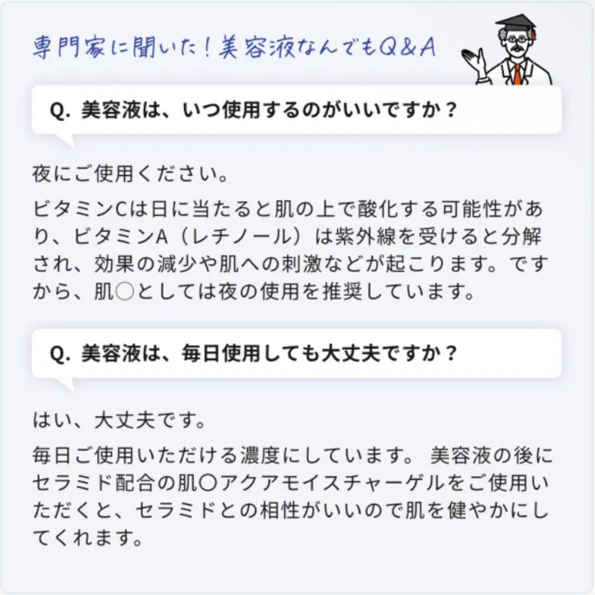 ・美容液の後にアクアモイスチャーゲルをご使用いただくと、セラミドとの相性が良いため、肌を健やかにしてくれます。