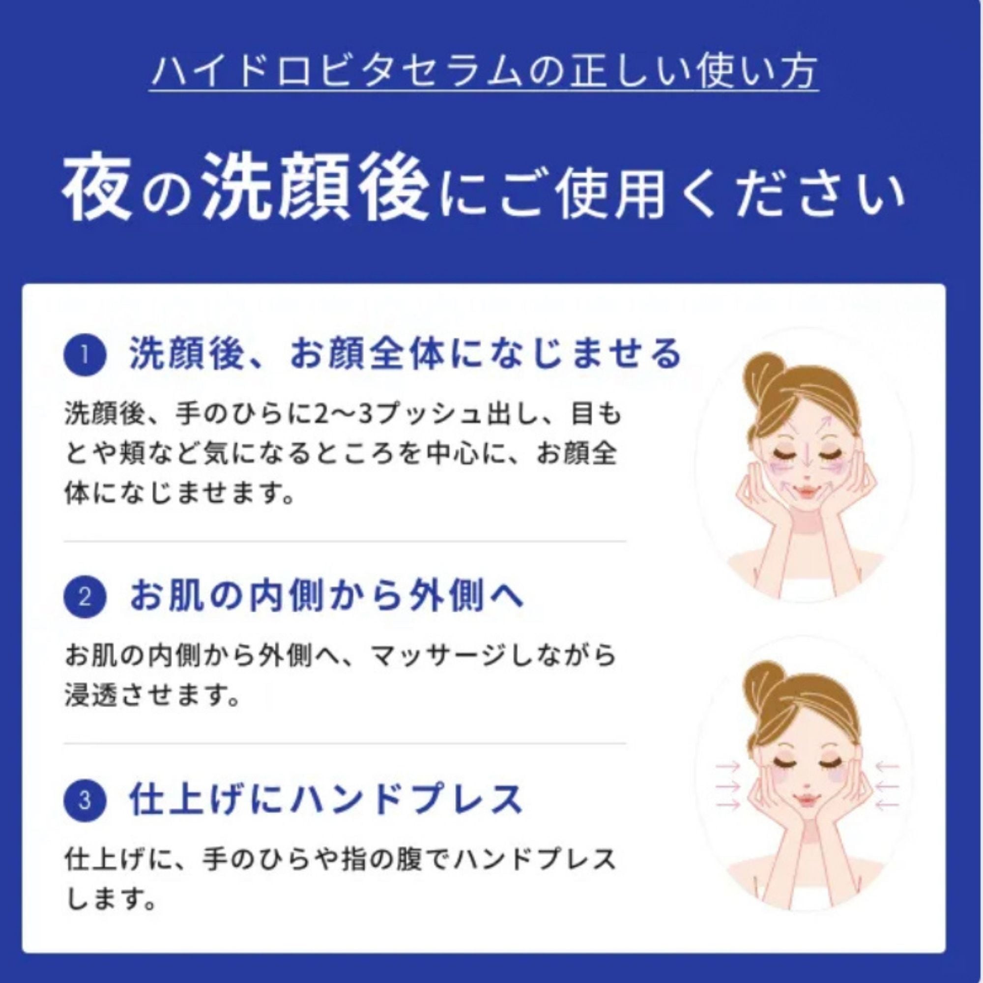 STEP.02:お肌の内側から外側へ、マッサージしながら浸透(※1)させます。