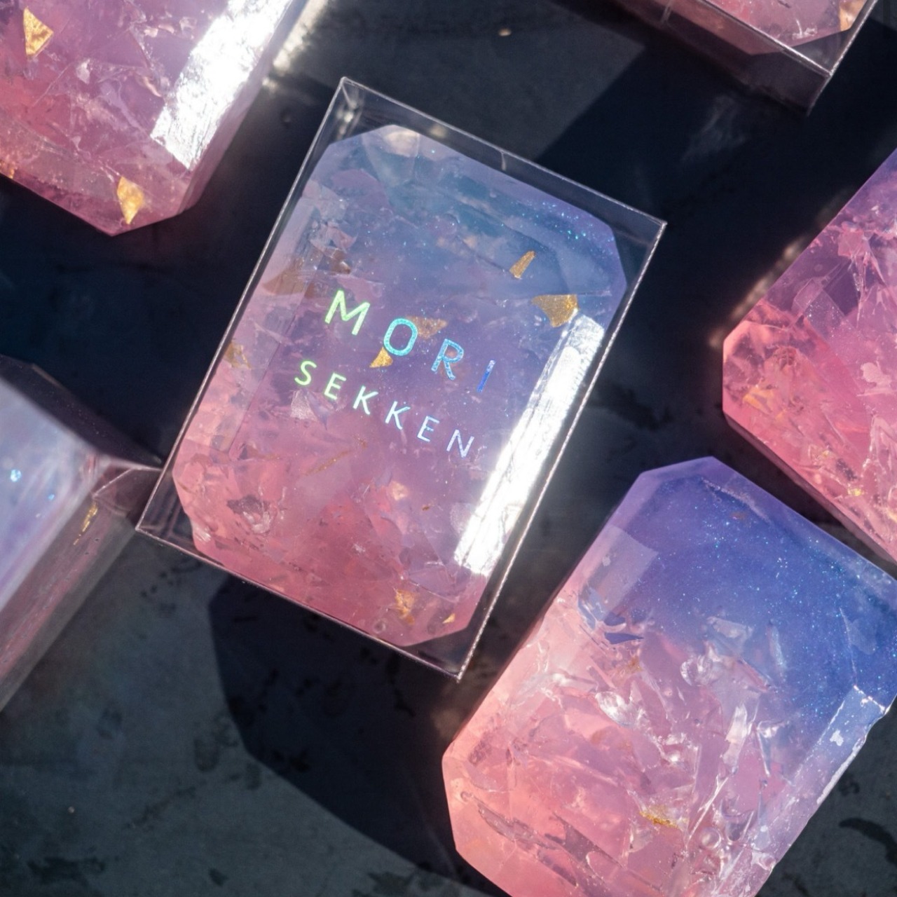 •森石鹸の宝石石鹸は、神奈川県茅ヶ崎市で、「洗うをもっと楽しく」をコンセプトに2022年4月に立ち上げたばかりのブランドです。石鹸のデザインに関して海外のコンテスト(soap challenge club)で優勝経験や数々の受賞を重ねられており、国内外から高い評価のあるせっけんブランドです。使い心地が良いのはもちろん、目で見て楽しい、香りも良い石鹸を石けん職人さんが1つ1つ丁寧にハンドメイドで仕上げる世界で一つだけの石けん。環境と倫理に配慮した材料を使用し、植物性原料を使用した美しい石けんを製造されています。自分へのご褒美や大切な人へのギフトにぴったりです。