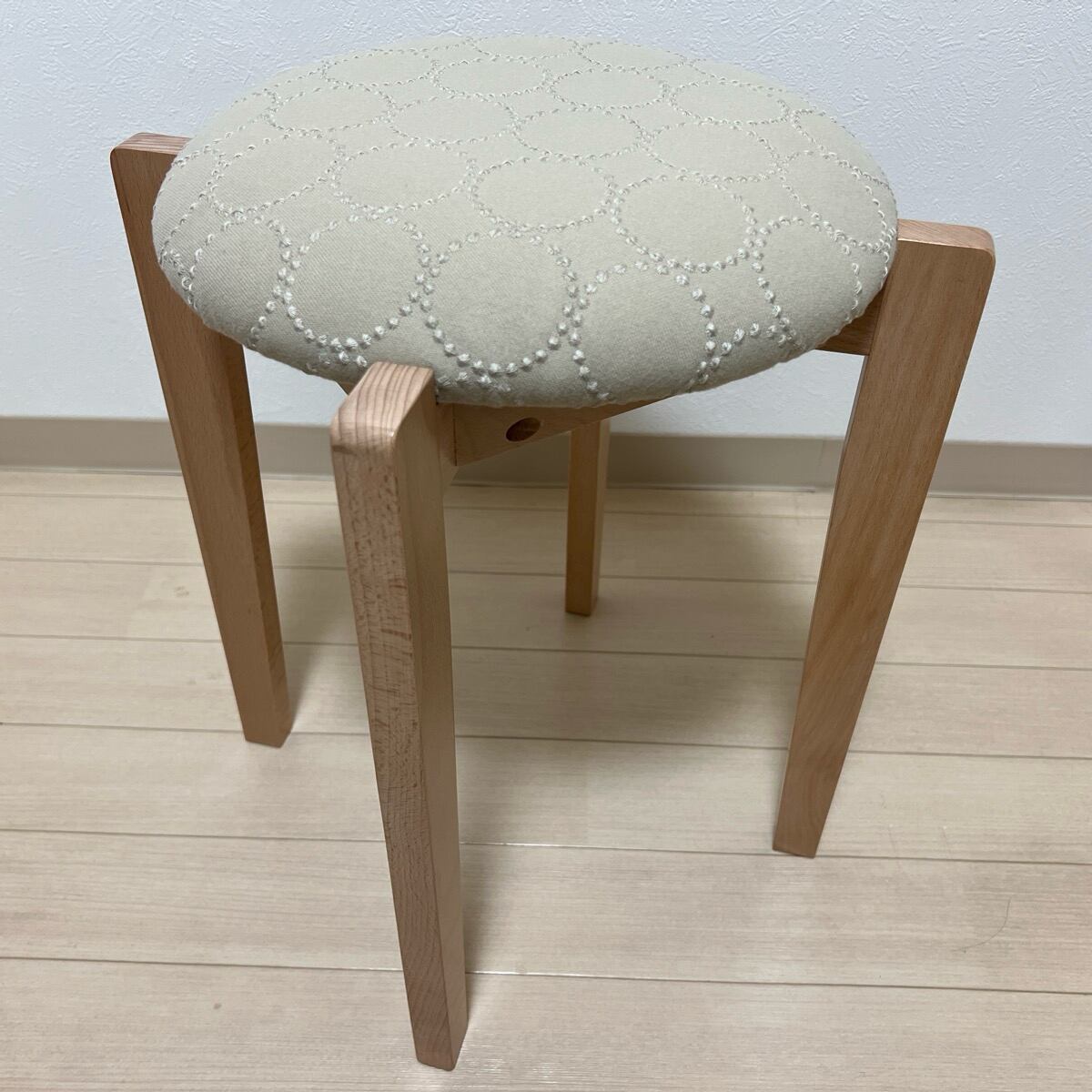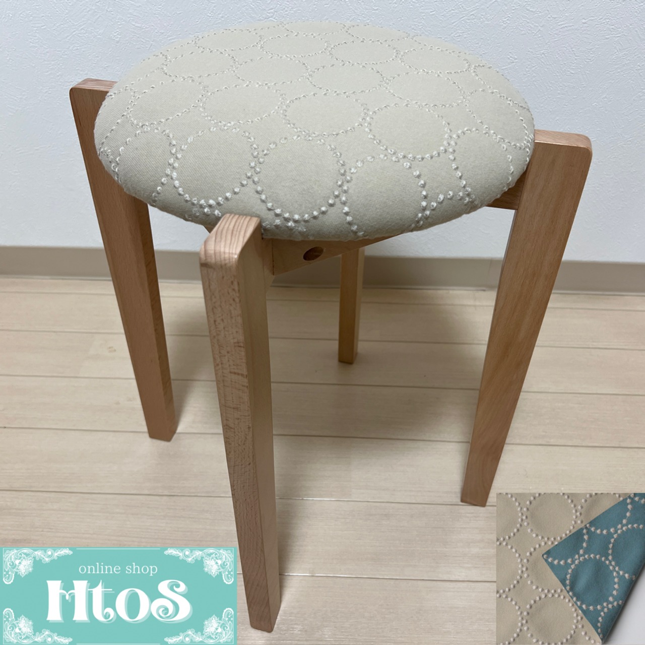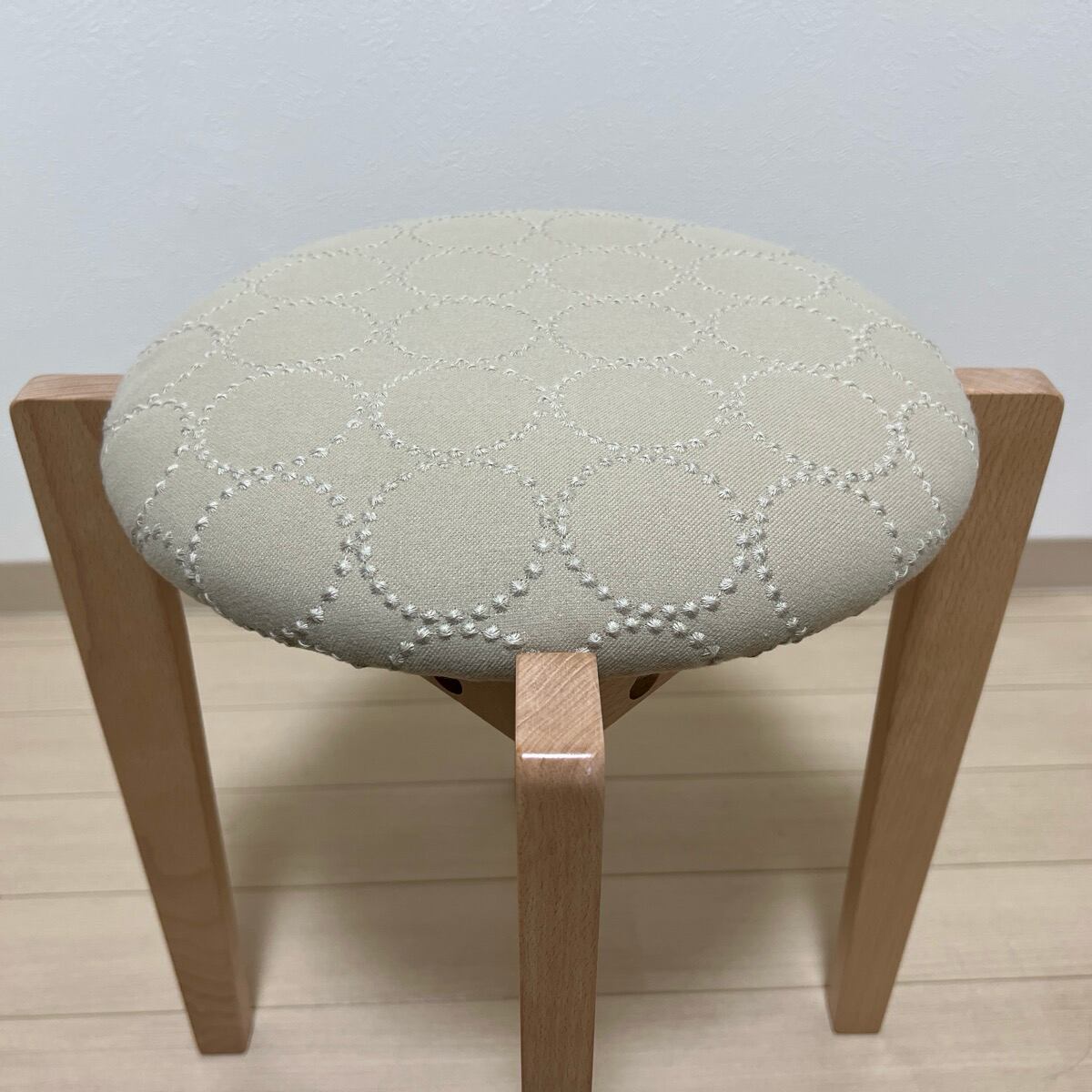 ③販売しているスツールはミナペルホネンが販売している商品や、コラボ商品ではございません。タンバリンの生地を使用して座面を張り替えたハンドメイドのものになります。