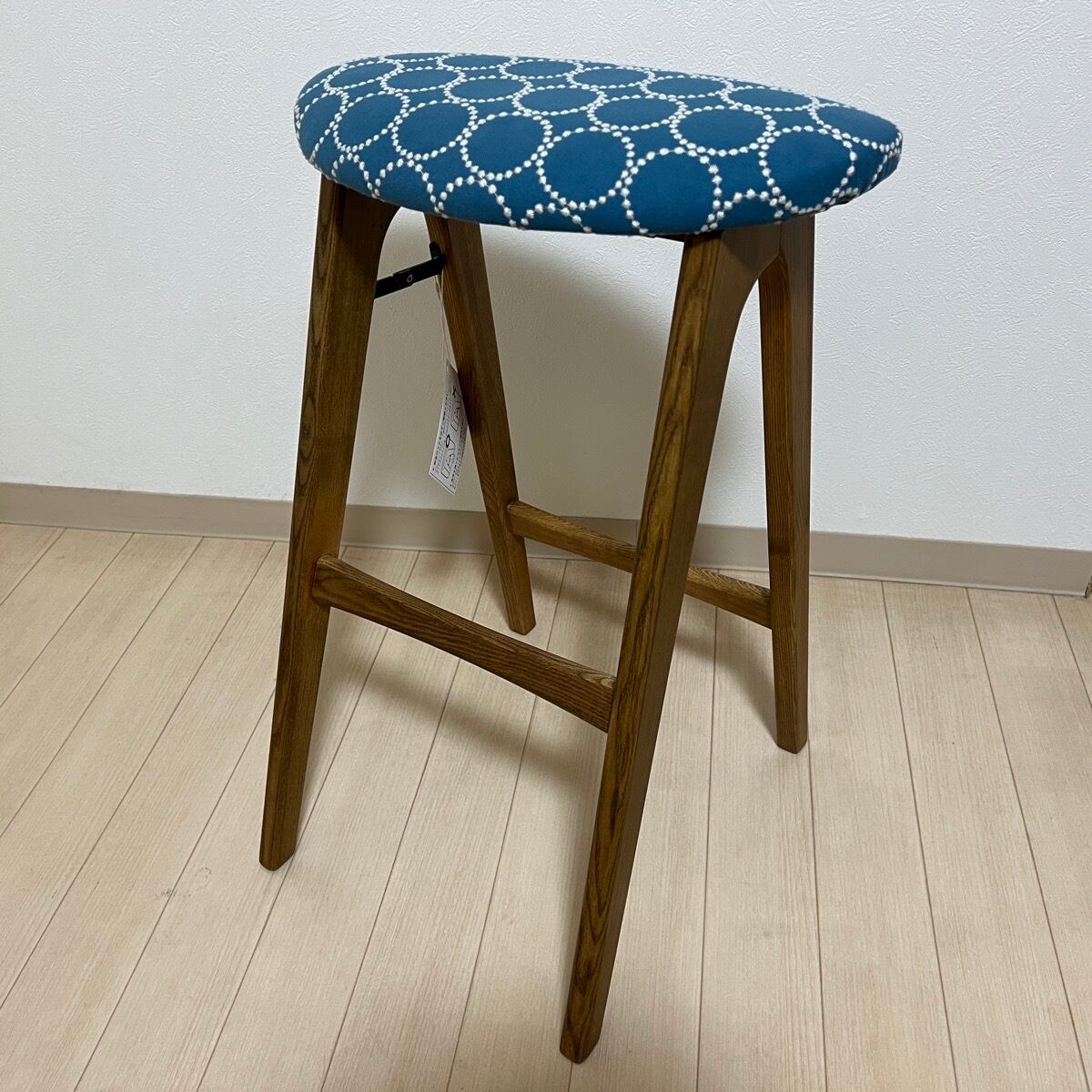 こちらのスクエアスツールは、ミナペルホネンのdopのブルー/イエローを使用し、折りたたみスツールの座面を張替えたハンドメイドの物になります。スツールは新品ではございますが、初期の小キズがある場合がございます。