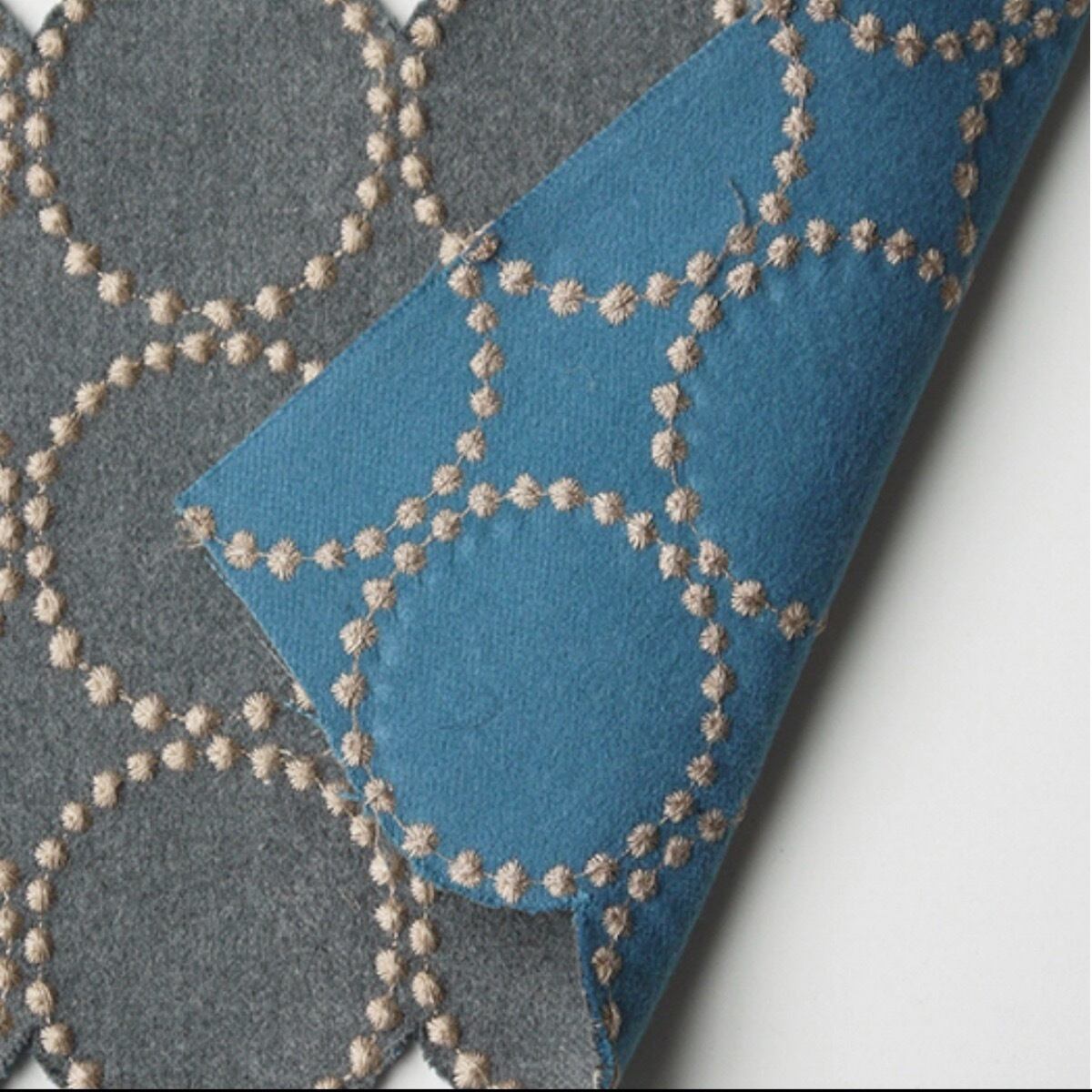両面モールスキン(モグラの毛皮のような感触をもち、片面を起毛した厚手のコットン織物) のダブルフェイスによる生地“dop” は、使い込むうちに表面の糸が擦り減ることで裏面の色が現れてくる性質を持ち、劣化するというのではなく時間をかけて変化し永く愛用していただけるよう考えられデザインされています。