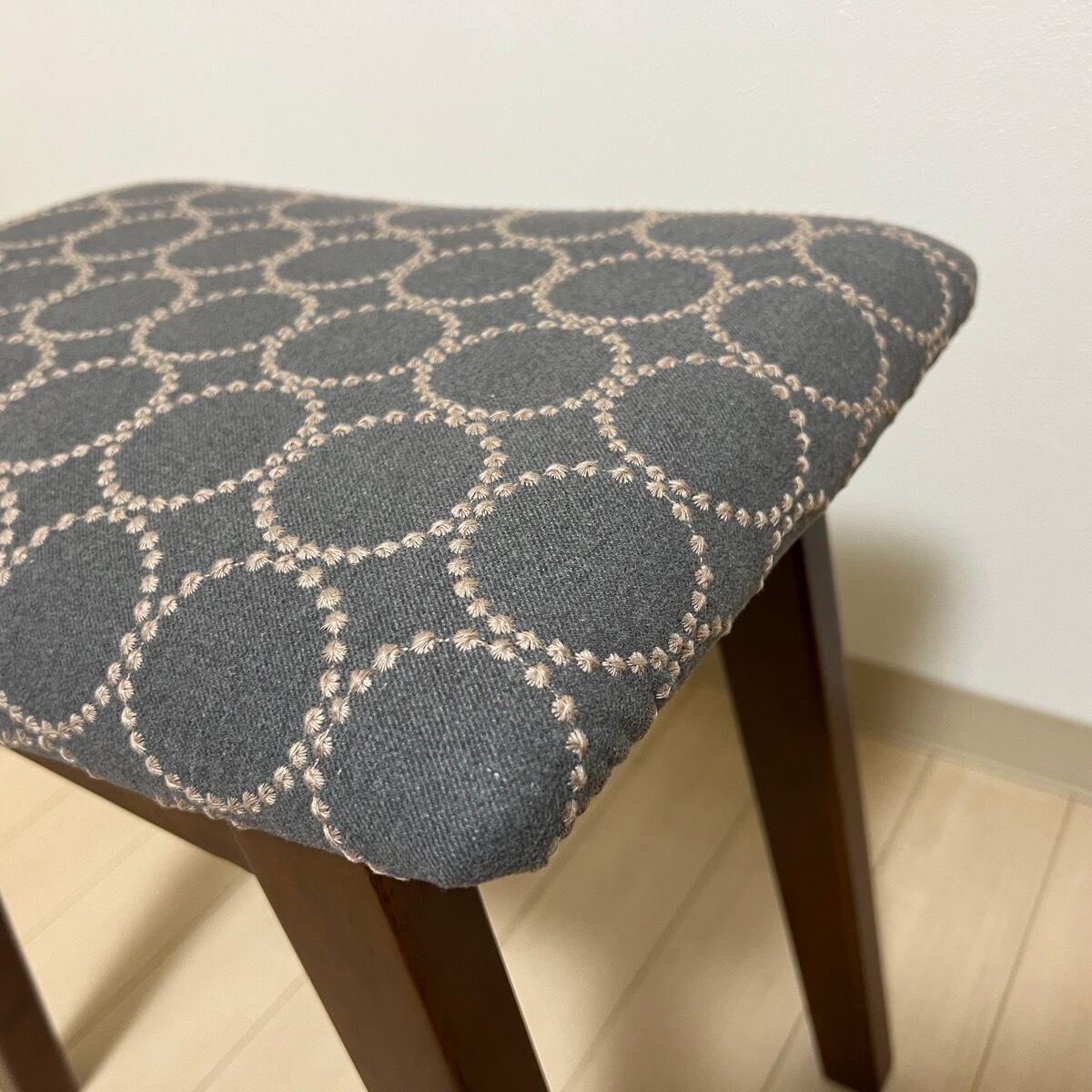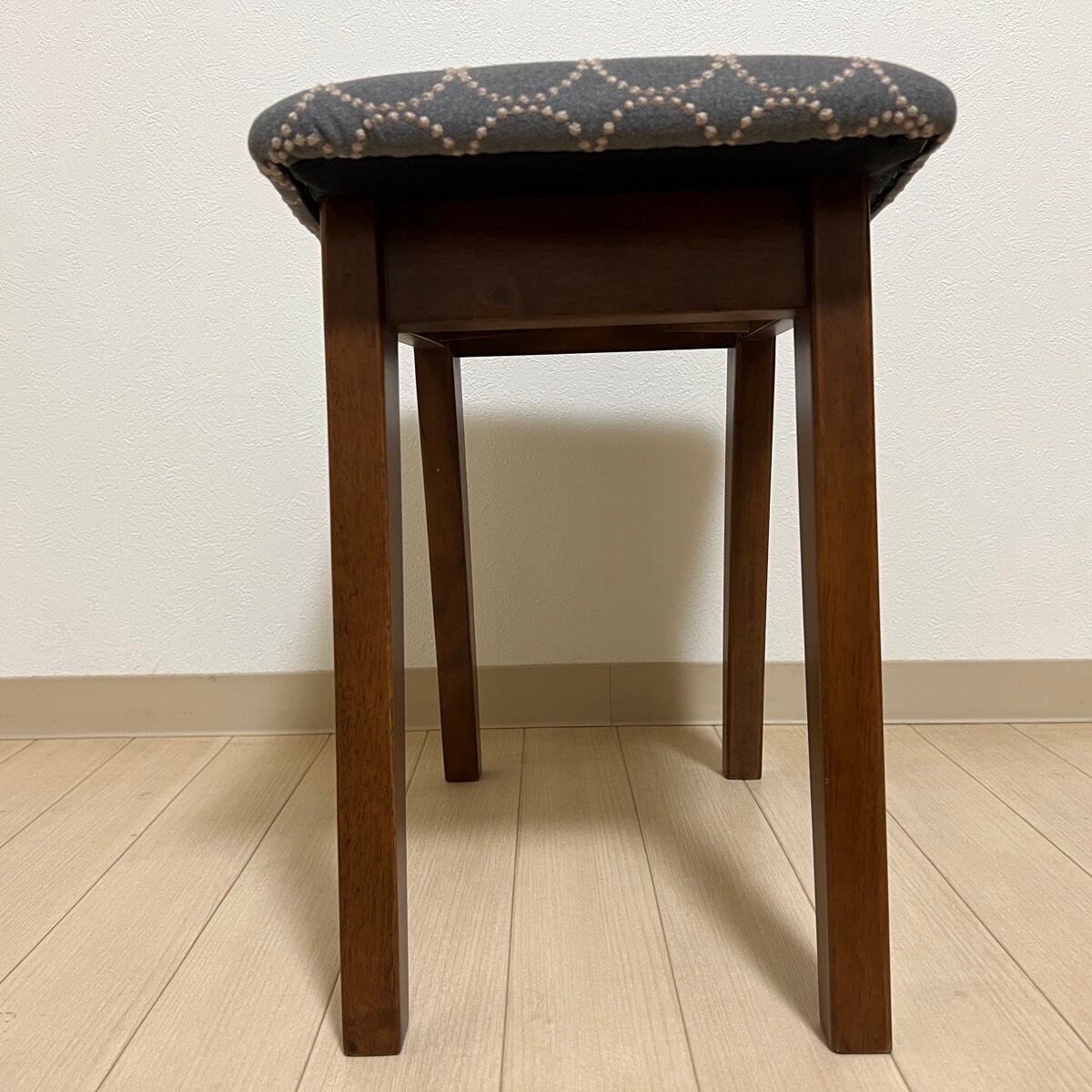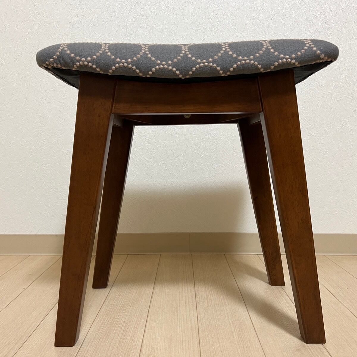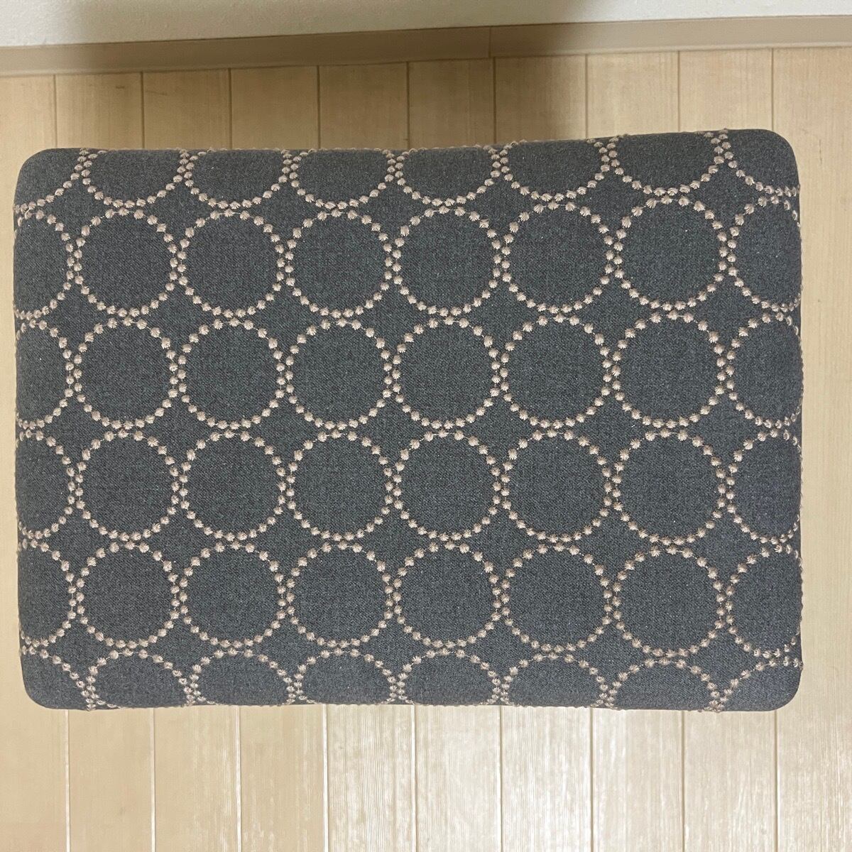 こちらの太脚スクエアスツール(脚色はウォールナット色)は、ミナペルホネンのdopのグレー/ブルーを使用し、スツールの座面を張替えたハンドメイドの物になります。新品ではございますが、初期の小キズがある場合がございます。
