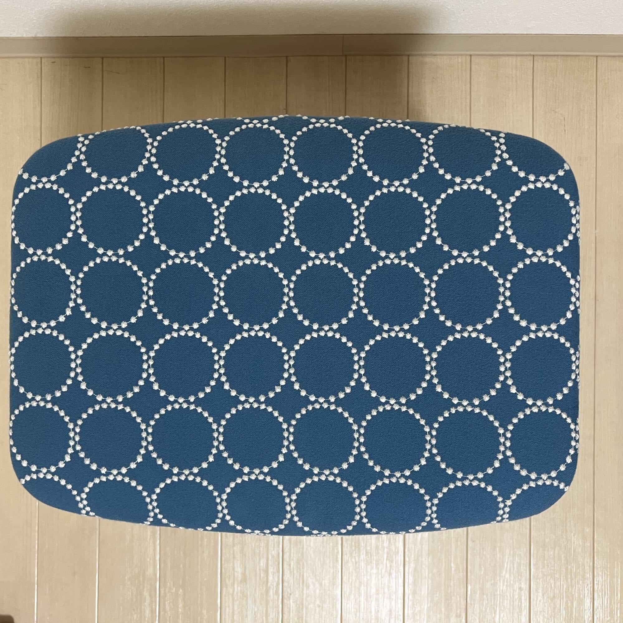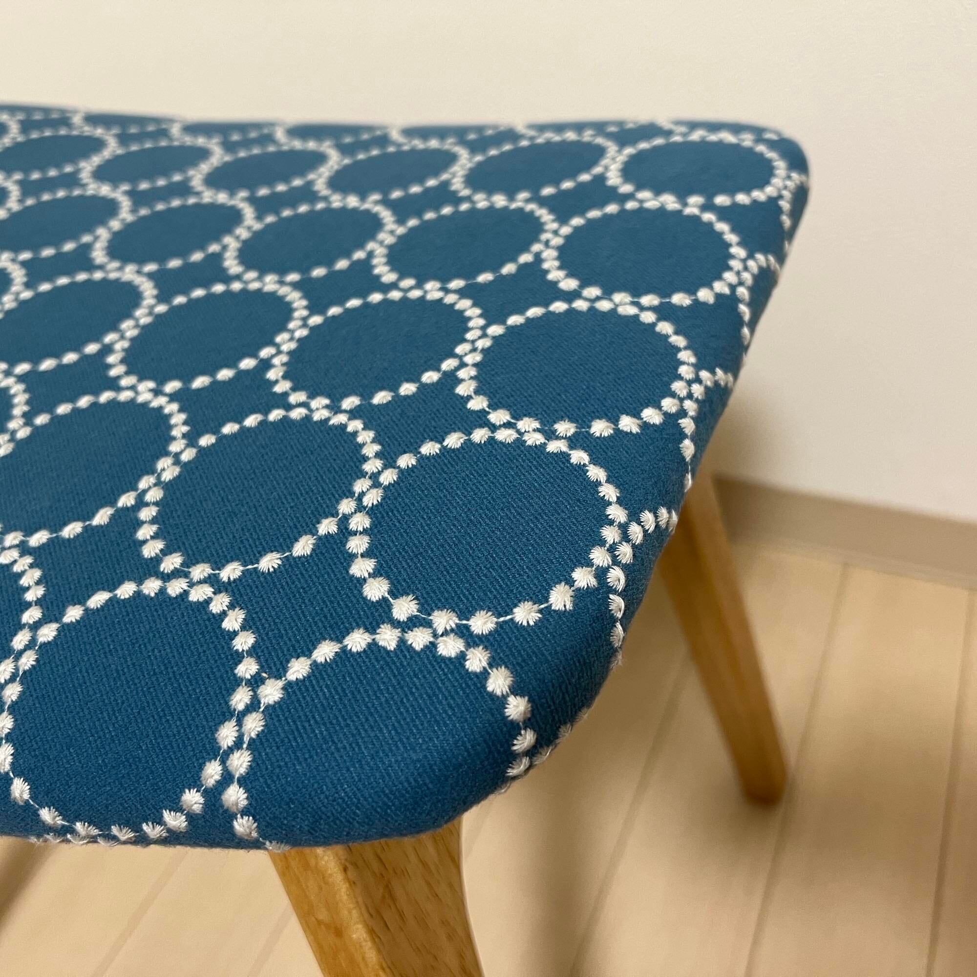 こちらの細脚スクエアスツールは、ミナペルホネンのdopのブルー/イエローを使用し、スツールの座面を張替えたハンドメイドの物になります。新品ではございますが、初期の小キズがある場合がございます。