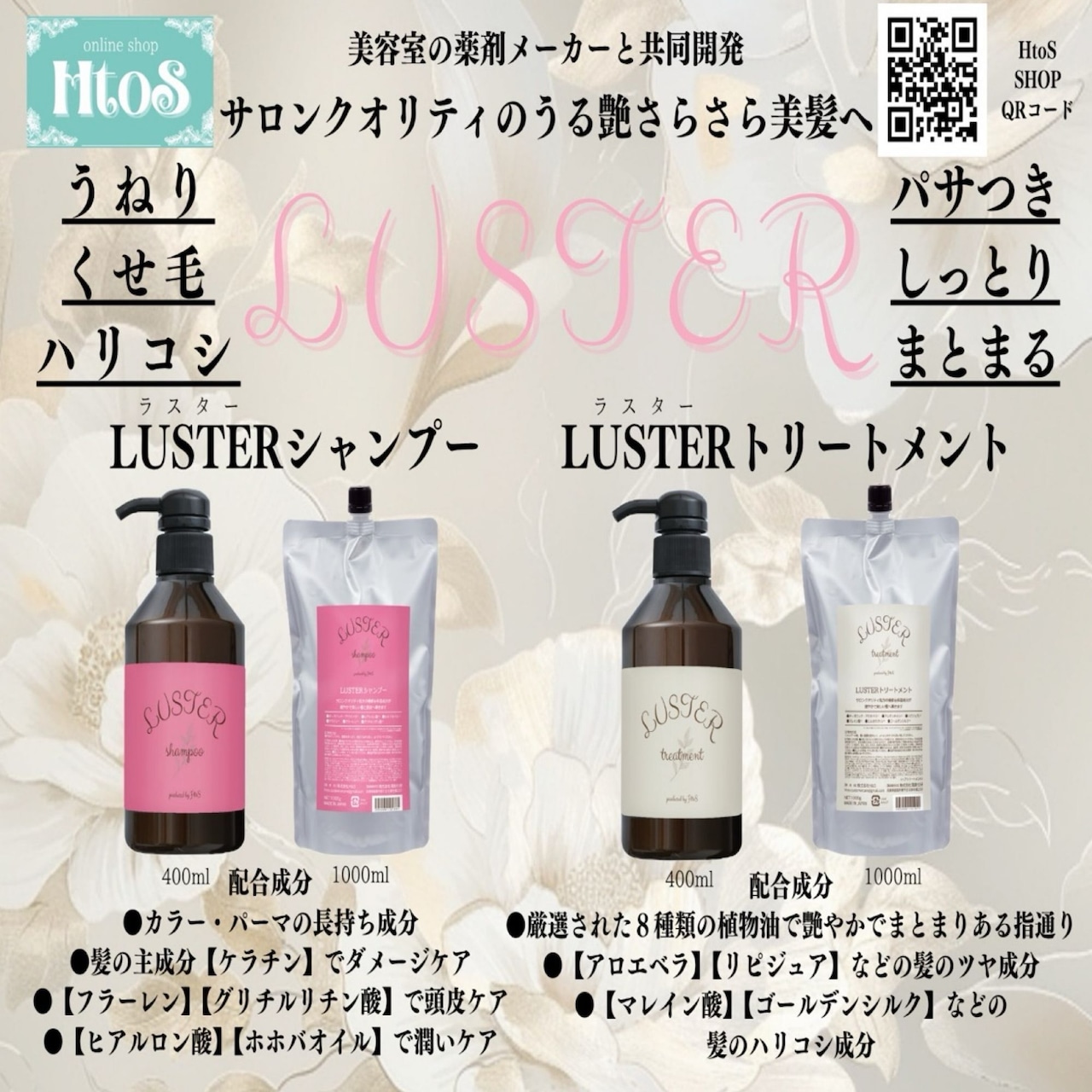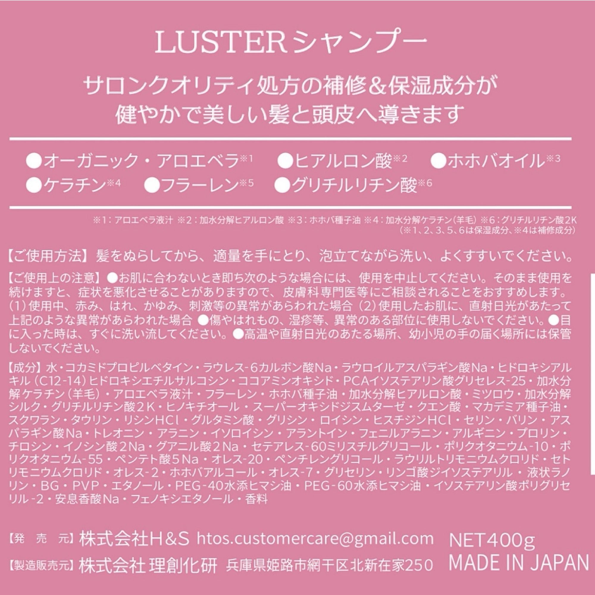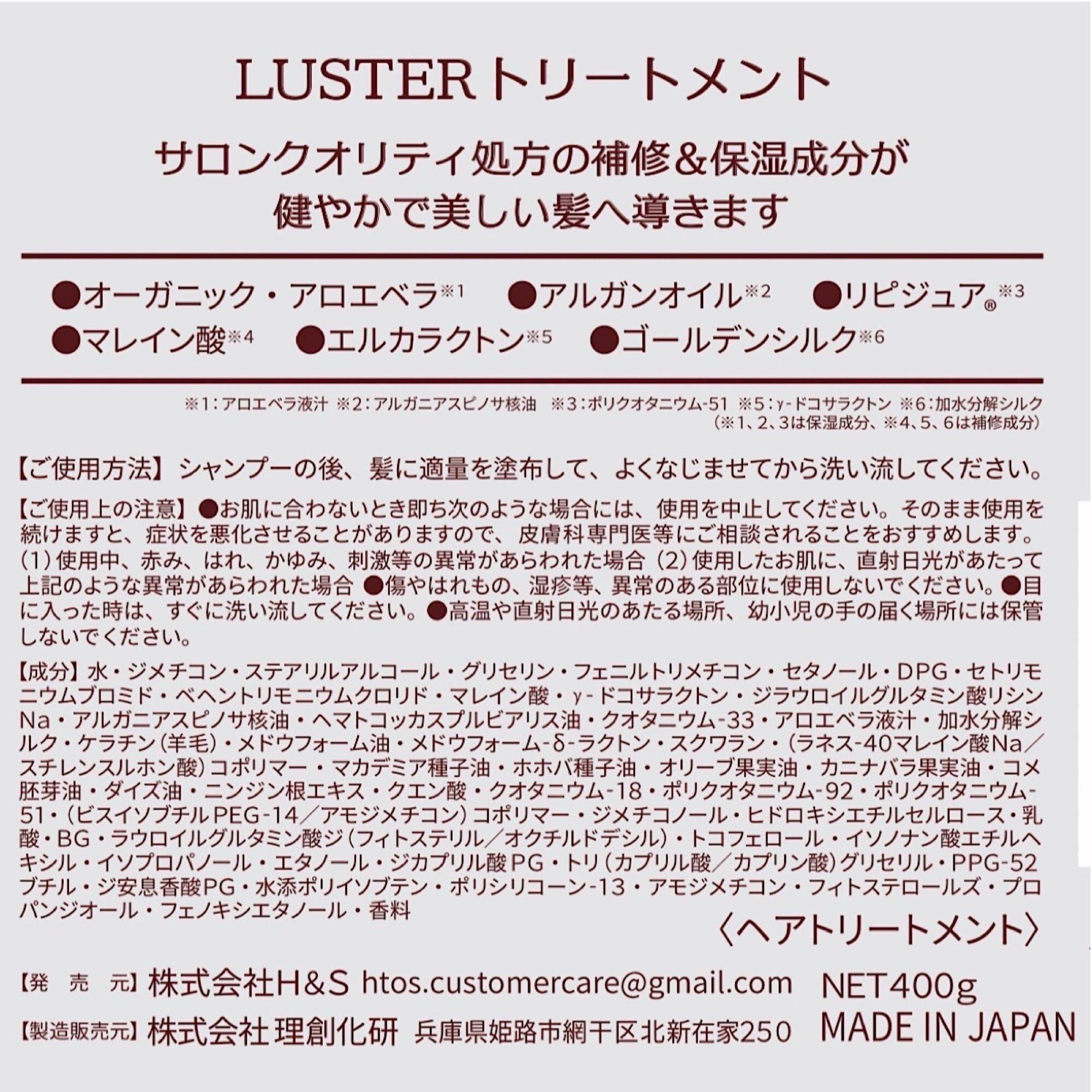 商品名: LUSTER(ラスター)シャンプー&トリートメント 400mlセット