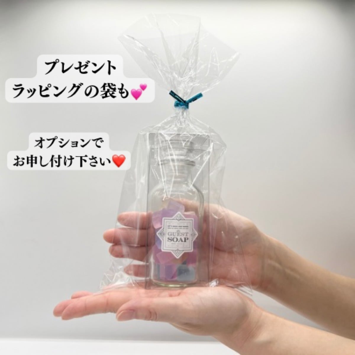 ※ラッピング袋の同梱をご希望のお客様は、ご注文時のオプションにて必要枚数をご記載ください。ゲストソープ1個につきラッピング袋は1つとなります。