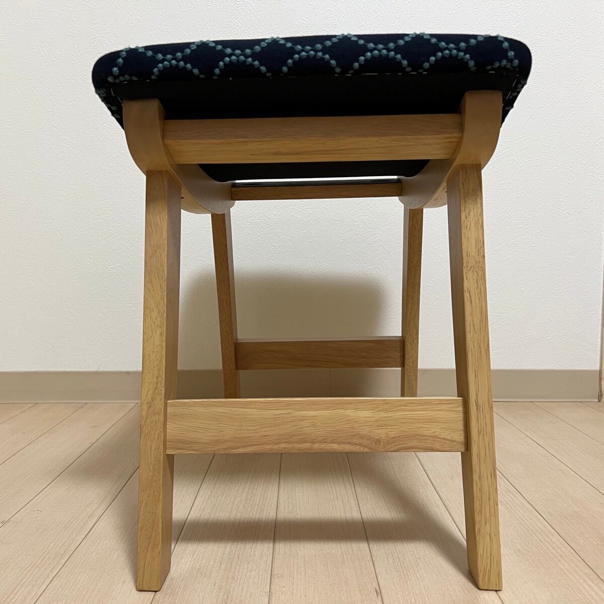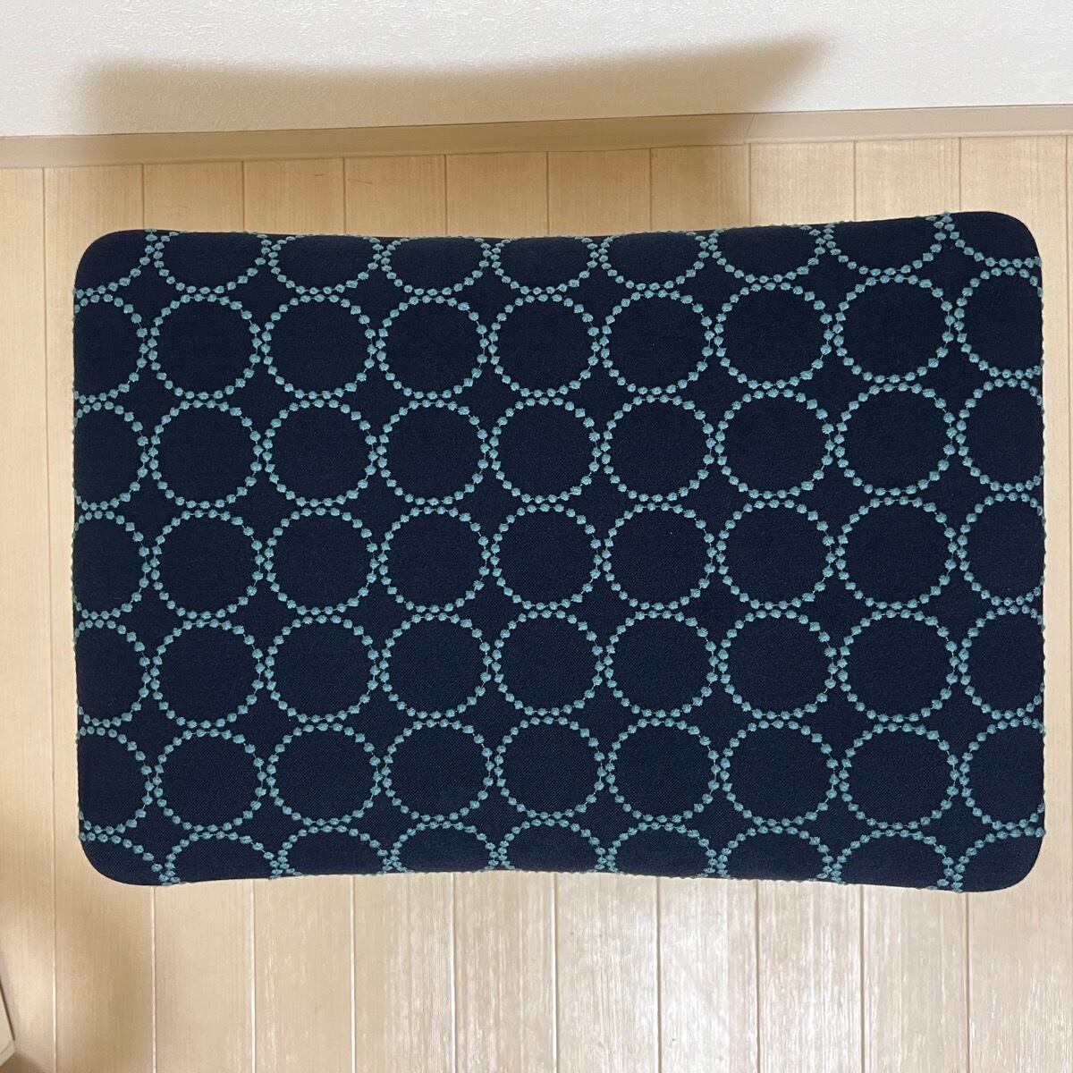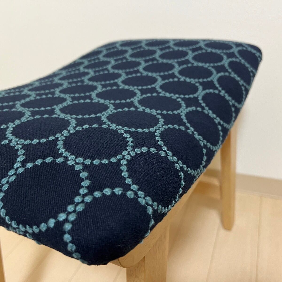 こちらのスクエアスツールは、ミナペルホネンのdopの新インディゴ/ダークグリーンを使用し、スクエアスツールの座面を張替えたハンドメイドの物になります。スツールは新品ではございますが、初期の小キズがある場合がございます。