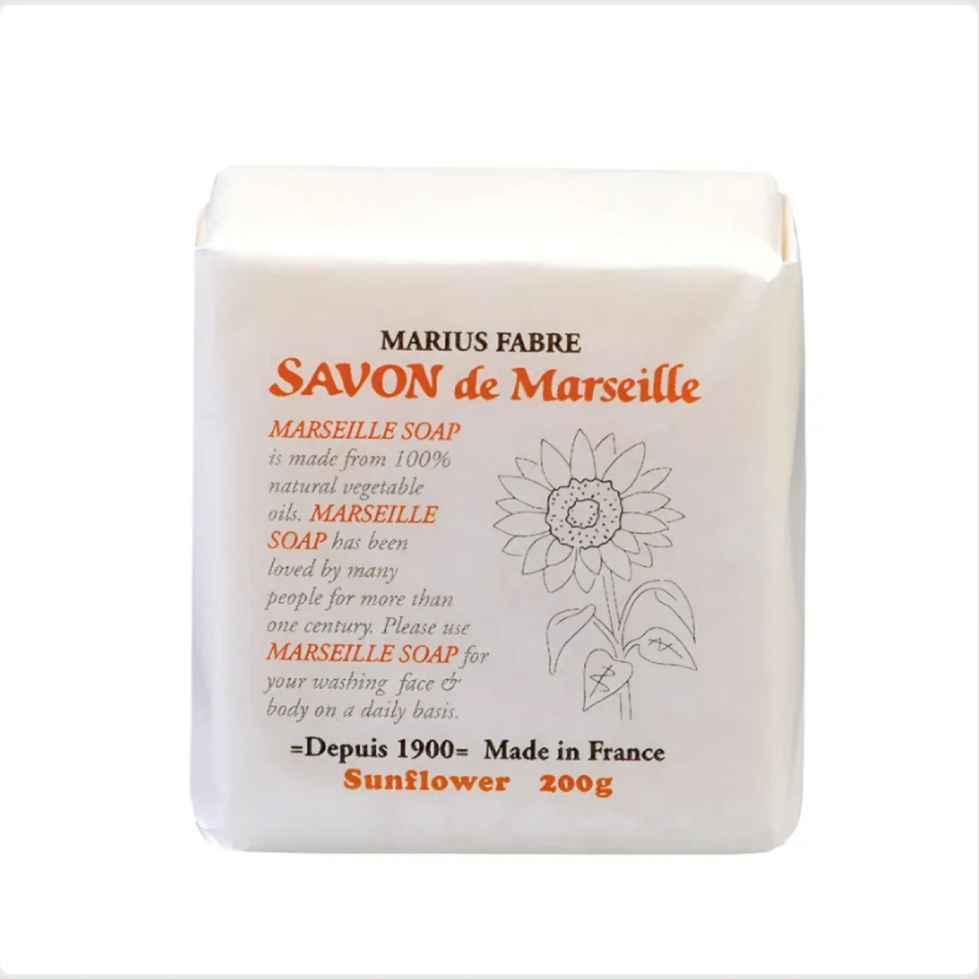 マルセイユ 石鹸 サンフラワー 200g サボンドマルセイユ | フランス マリウスファーブル プレゼント 贈り物 無添加 無着色 着色料 不使用 防腐剤 ボディウォッシュ ボディケア 固形石鹸 低刺激 洗顔