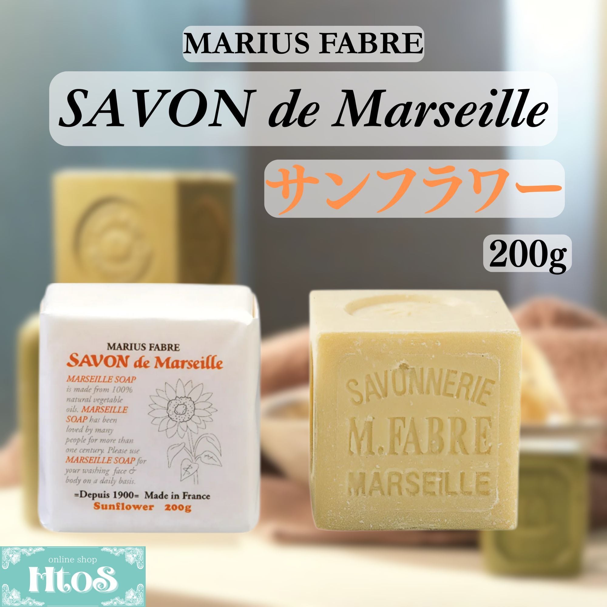 サボンドマルセイユのマルセイユ石鹸、サンフラワー200gの販売です。