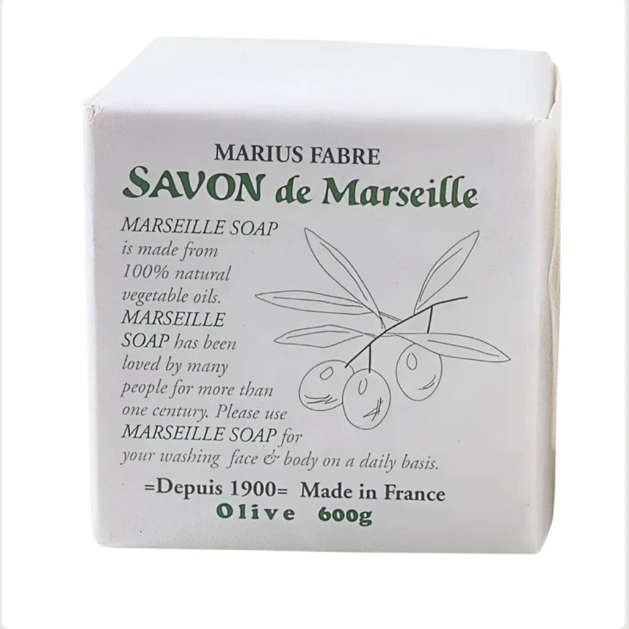 マルセイユ石鹸 オリーブ 600g サボンドマルセイユ | マリウスファーブル フランス 低刺激 乾燥肌 敏感肌 固形 石鹸 ボディソープ シャンプー 洗顔石鹸 プレゼント 自然派志向 無添加 無着色 無香料 無防腐剤