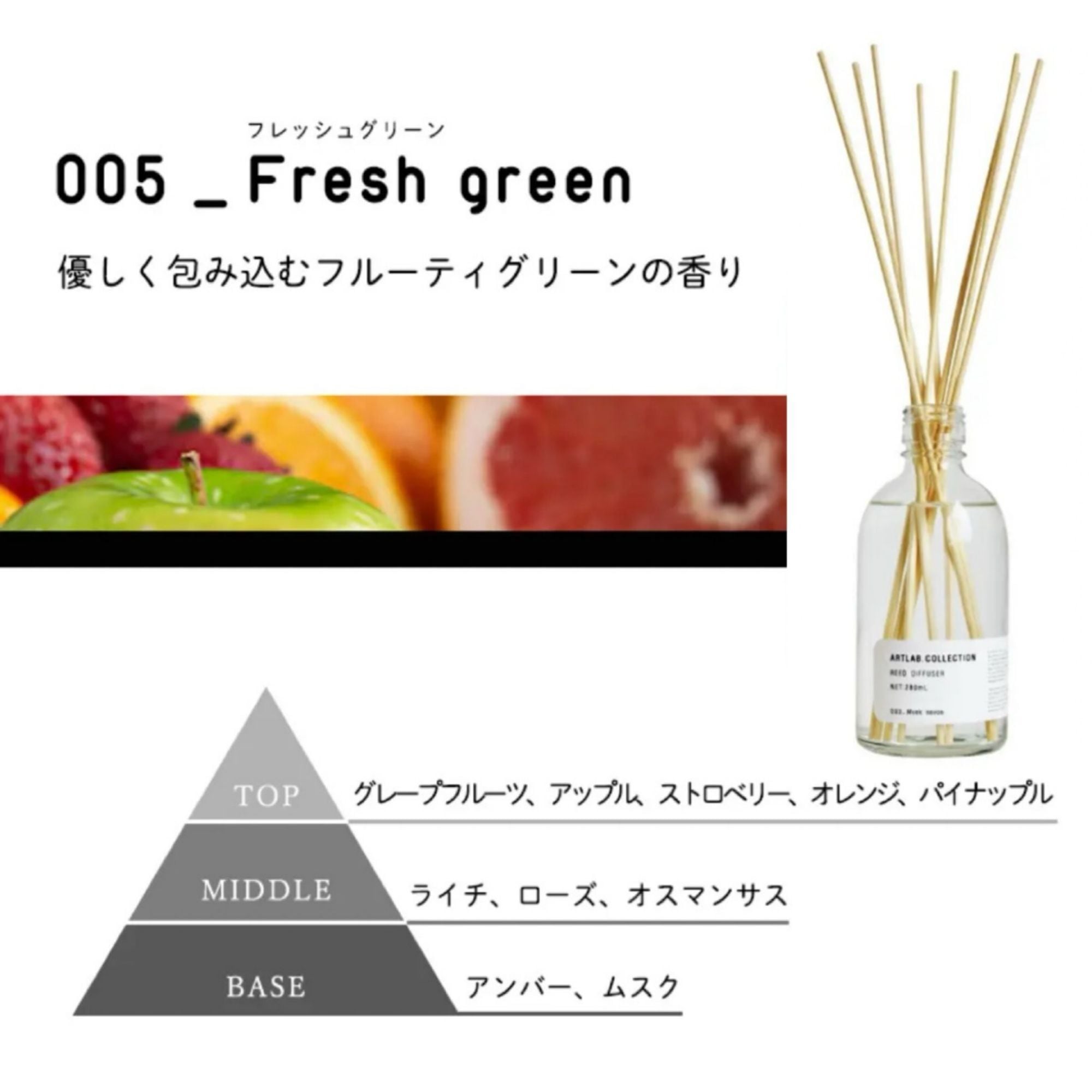 【Fresh green/フレッシュグリーン】:優しく包み込むグリーンの香り