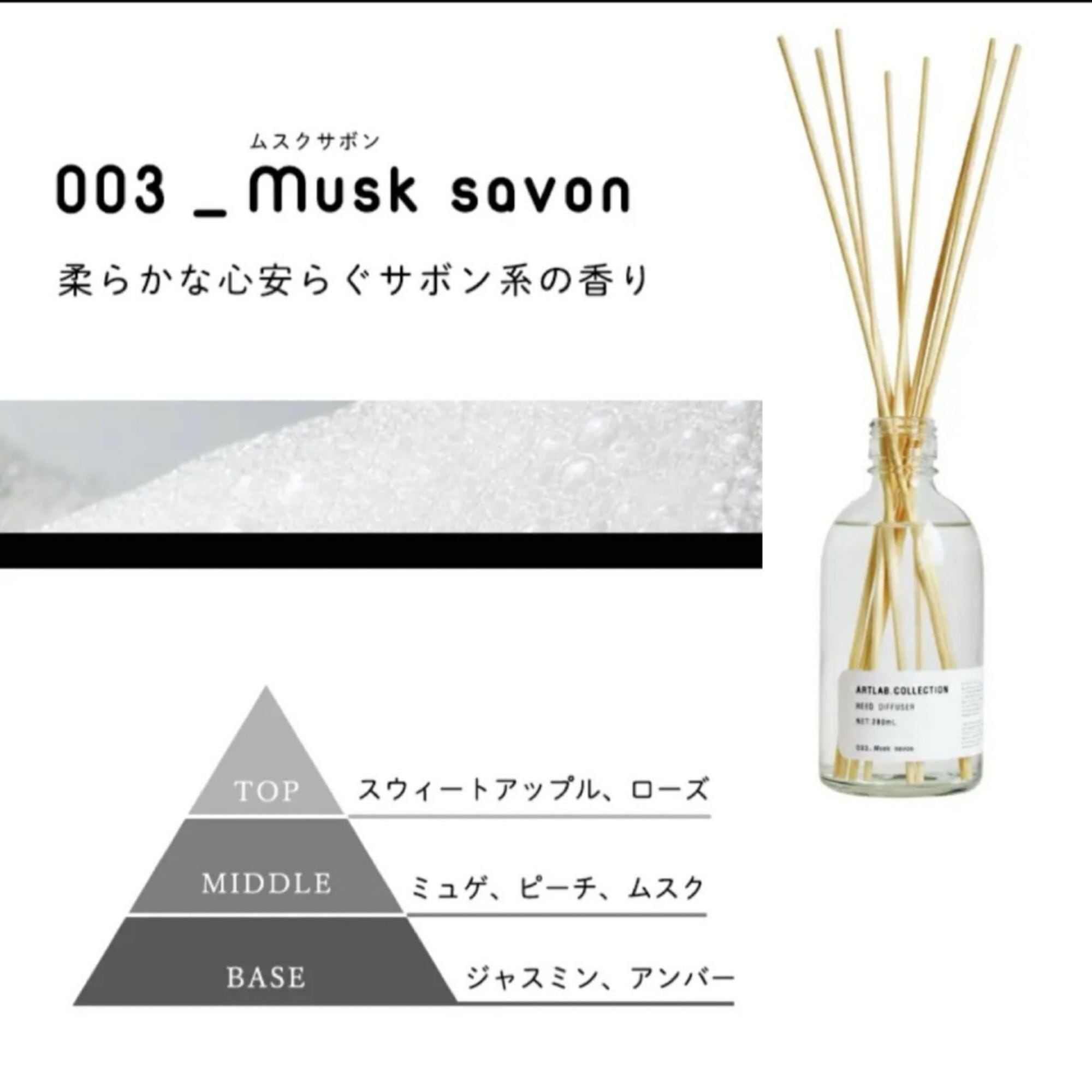 【Musk savon/ムスクサボン】:柔らかな心安らぐサボン系の香り