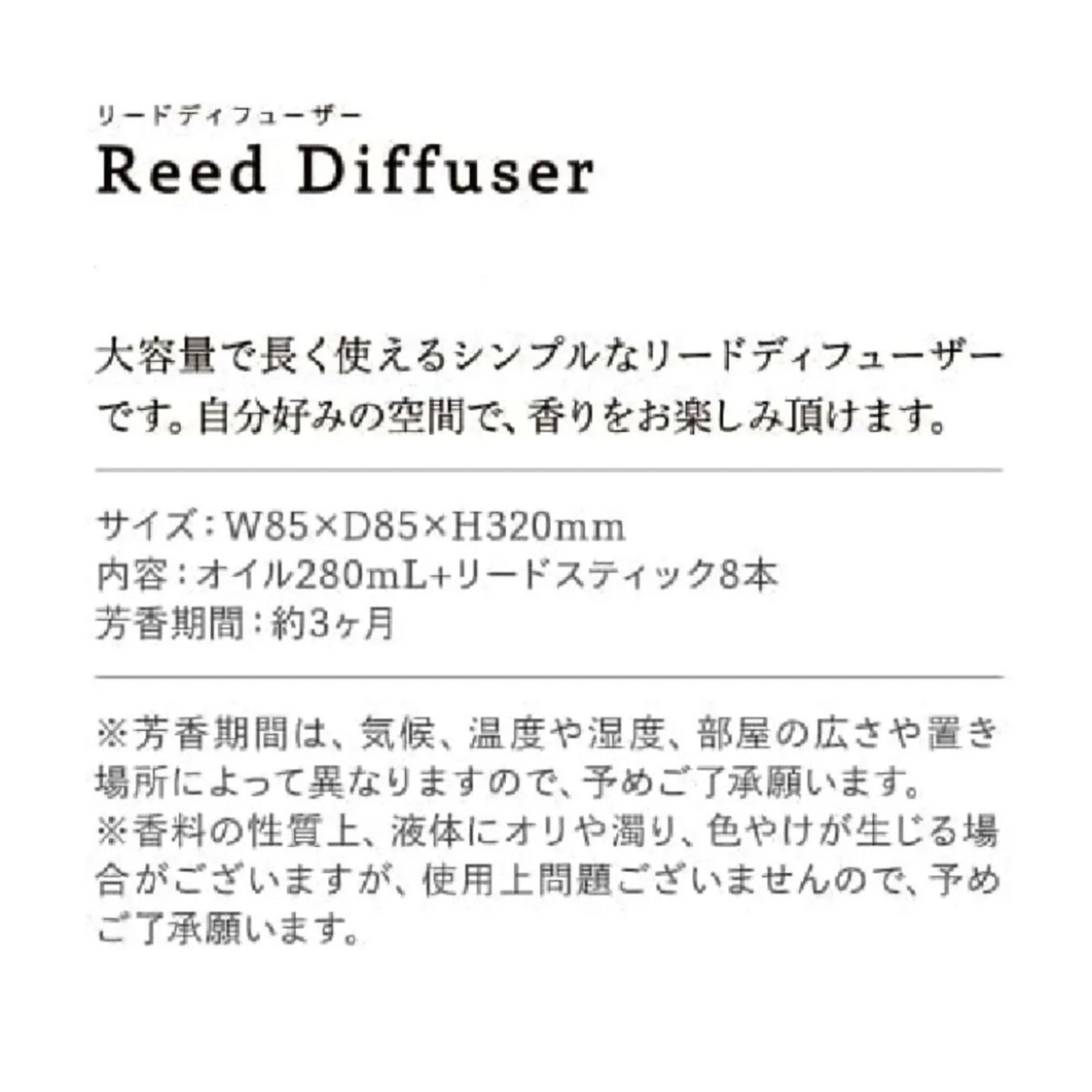 ●芳香期間は、気候、温度や湿度、部屋の広さや置き場所によって異なりますので、予めご了承願います。