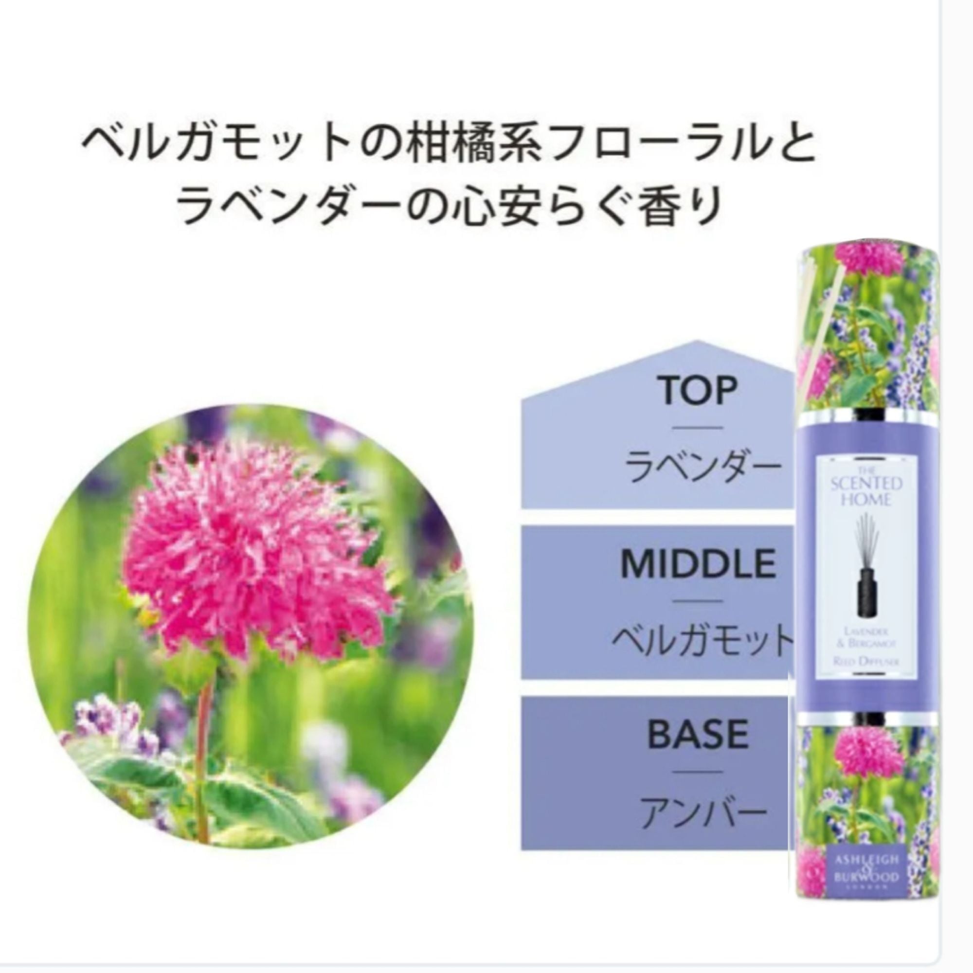 【ラベンダー&ベルガモット】:ベルガモットの柑橘系フローラルとラベンダーの心安らぐ香り