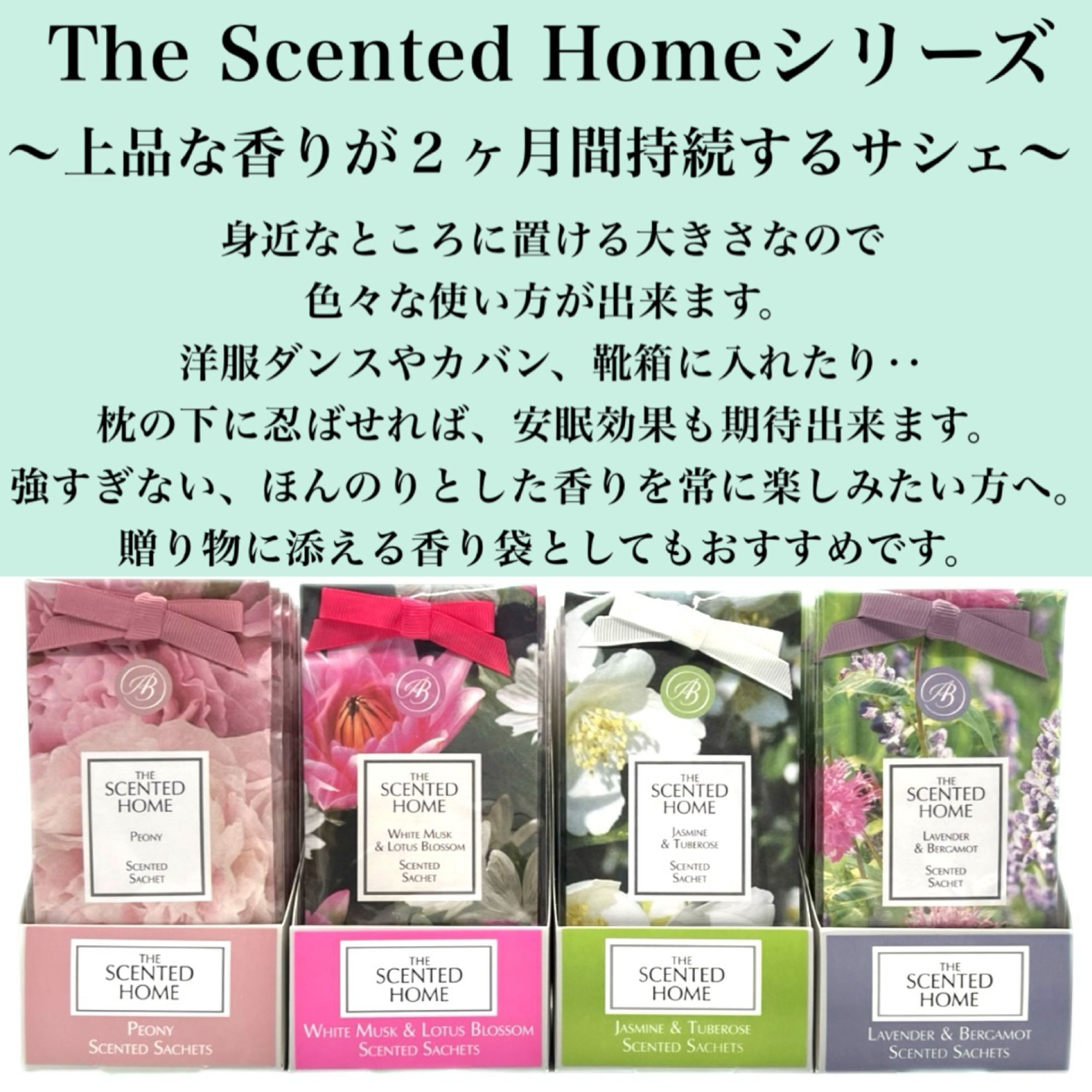 100年以上の歴史をもつ、イギリス・ロンドン発の世界中に愛されるフレグランスブランド、ashleigh&burwood/アシュレイ&バーウッドのサシェ(香り袋)がHtoSでご購入頂けます。このアシュレイ&バーウッドのTheScentedHomeシリーズのサシェは、上品な香りが約2ヵ月間持続する香り袋なので、クローゼットやカバンに入れたり、枕の下に忍ばせれば安眠効果も。強すぎない、ほんのりとした香りを常に楽しみたい方におすすめです。可愛いおしゃれな外箱もお部屋のインテリアとしてもご利用頂けます。